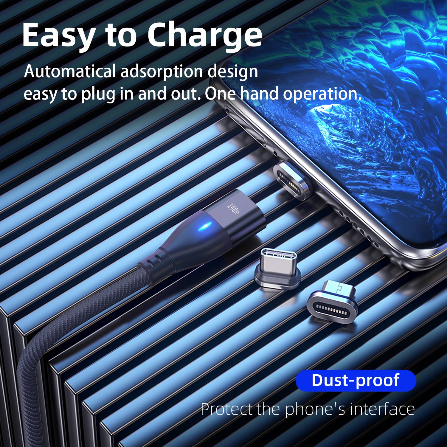 ONE HAND OPERATION – Automatic adsorption with double magnetic force, more stable to connect and not easy to fall off when charging. The subtle LED light design will assist find the cable in the dark, and not too strong to disturb your sleep